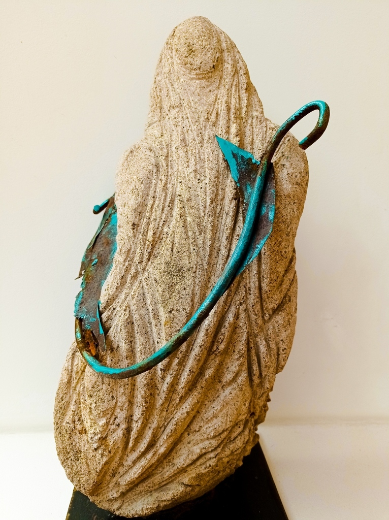 на цигуларка и на фигура с арфа. Предстои да им направя постаменти, за да изглеждат по-добре, защото скулптурата е триизмерно изкуство с поглед от всички страни. Работил съм и предмети от мрамор, но при тях нещата са по-различни.