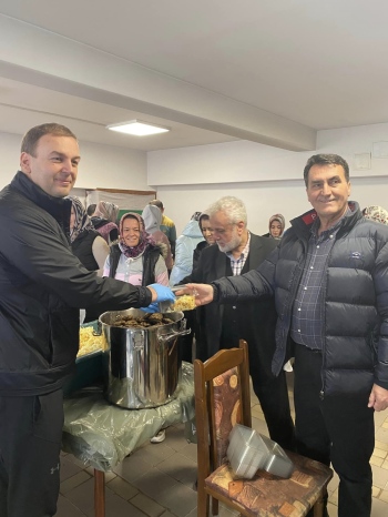 След това започна празничната благотворителна вечеря ифтар, която бе раздадена пред входа на читалището.