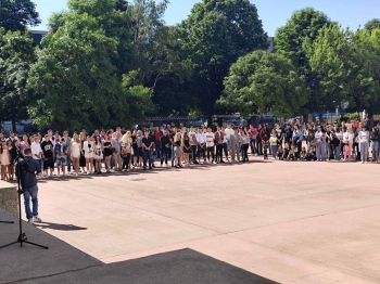 Класните ръководителки на дванайстите класове Айля Лютфи, Ралица Танкова и Елена Петрова с вълнение се разделиха с учениците си.