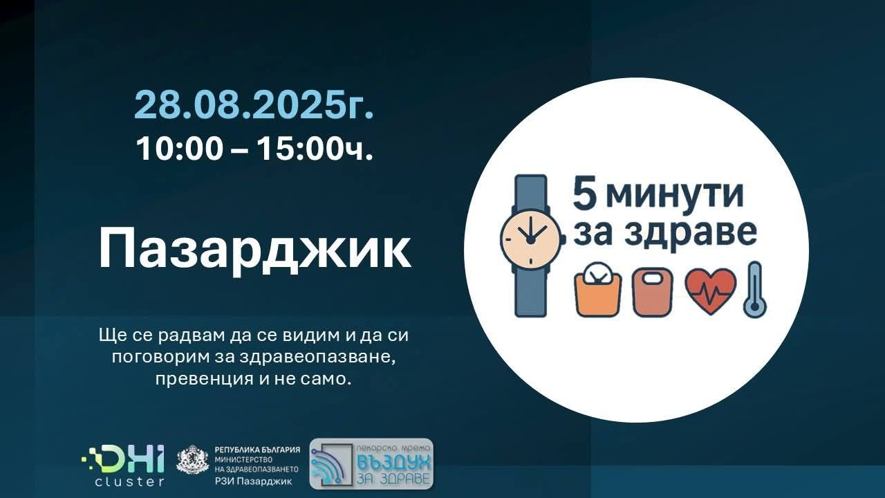 Повече за „5 минути за здраве“, в рамките на която ще се сдвояват и телефони със здравни достието посредством мобилното приложение ездраве, в Пазарджик и страната четете ТУК.