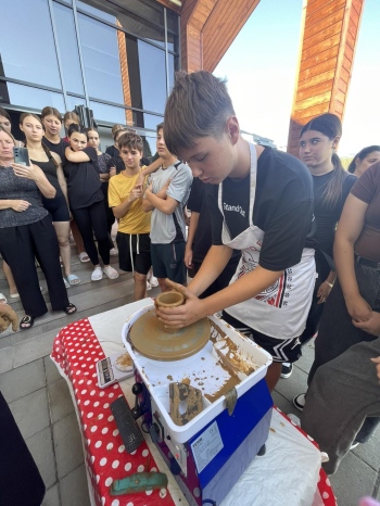 Днес по време на престоя си в Панагюрище децата участваха в грънчарска работилница, където изработиха съдове от глина. После разгледаха музейния комплекс и благодариха на всички за топлия прием.
