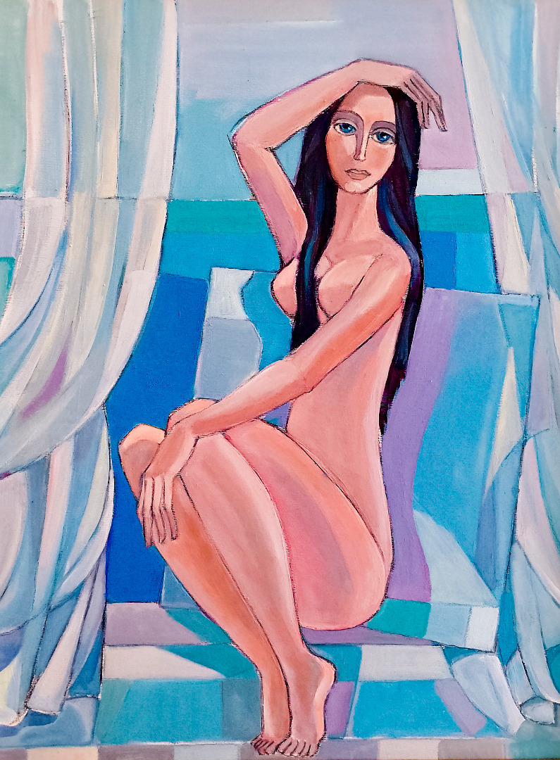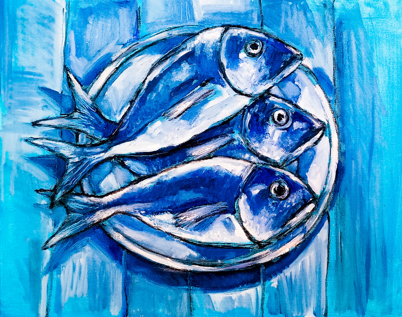„За мен това е един от най-хубавите цветове, извън всички оцветени политически пристрастия (никога зад мен нее имало група хора с определен цвят). Категорично не си мисля за Пикасо и неговия син период, но реших това издание на изложбата ми да е в сини цветя, сини риби, сини рибари, сини къщи… Пък и аман тази година от „червени“ събития - пожари, засушавания, фалш и лицемерие в политиката… Реших да се потопя във водата. Водата е студена, синя, а това охлаждане исках малко да успокои и хората от тези нажежени страсти. Д