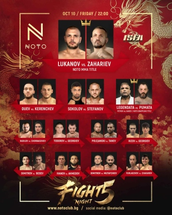 Както "Знаме" писа, Велинград бе домакин за пета поредна година на гала вечер по бойни спортове Noto Fight Night. За пети път Спортен клуб "Беси" с председател Красимир Толупов организираха зрелищното мероприятие, а в бойната клетка в клуб NOTO имаше 12 двубоя. В битка за титлата в главната среща Марио Луканов /СК "Пукет"- Тайланд/ победи Христо Захариев / БК "България" с треньор Камен Георгиев/.
