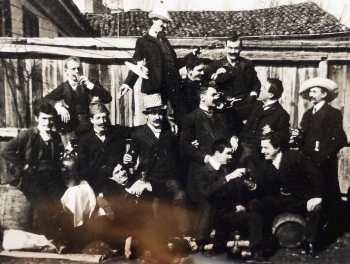 пред Софийския университет. Сред членовете й са Александър Божинов, Елин Пелин, Змей Горянин и съпругата му Соня, Илия Бешков, съгражданинът ни Райко Алексиев, проф. Андрей Николов, Борис Денев и др. От време на време идва и проф. Александър Балабанов заедно с приятелката си – поетесата Яна Язова, висока повече от една глава от него. Важна фигура в компанията е известният куплетист Стоян Миленков, който идва с китарата си и съчинява куплети, както и авторът на най-забавната книга за стара София Георги Каназирски—Верин, обяснява Петър Величков. И добавя, че