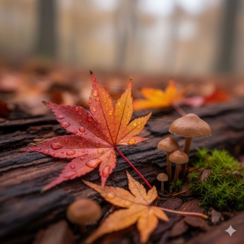 Есента често е облачна, влажна и мъглива, което може да се превърне в силно предимство. Мъглата добавя мистерия и мекота на пейзажа, като същевременно смекчава контрастите и подчертава цветовете на листата. Снимките в лек дъжд могат да придадат свежест и драматичност – капките вода по листата, локвите на пътеката или отраженията в езерото могат да направят кадъра уникален.
