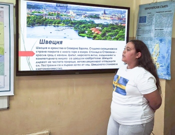 Шестокласниците изнесоха кратък урок пътешествие из Стария континент и представиха някои от полезните изкопаеми в България. Всяко дете носеше тениската с националния флаг на държавата, която представя.