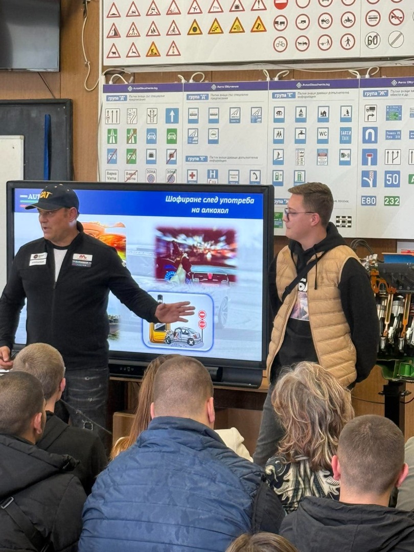 „Искам да съм полезен на обществото, защото е болно, когато стане дума за правилно управление на автомобила“, казва в края на разговори ни автомобилният ас. В школата силно наблягат на безопасността нагледно и теоретично – каски, колани, ролбари, пожарогасители… Но всичко това няма да е достатъчно, ако ние и вие не даваме пример като шофьори на децата си и на останалите участници в движението.