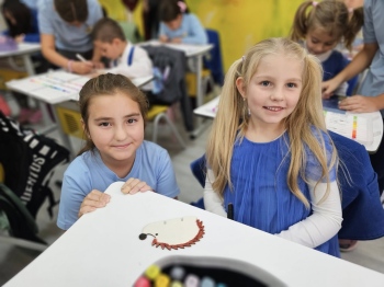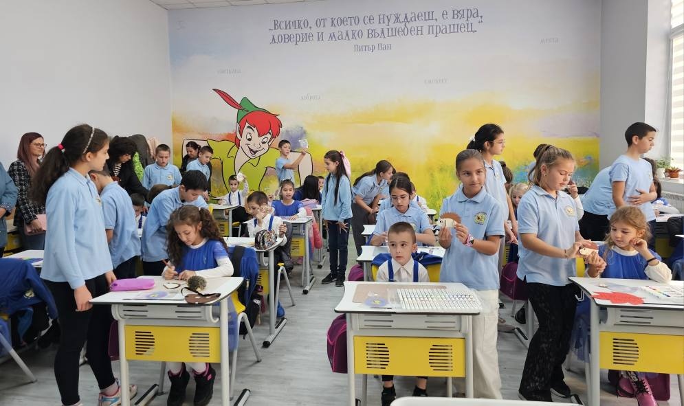 После всички заедно се потопиха в една топла приказка – историята за Таралежко, който с нетърпение отишъл на училище. Децата слушаха със затаен дъх, а след това, вдъхновени от геройчето и с помощта на големите ученици, оцветиха дървени таралежчета в цветовете на есента. Всяко таралежче стана различно, точно като своите малки автори – пъстро, усмихнато и красиво.