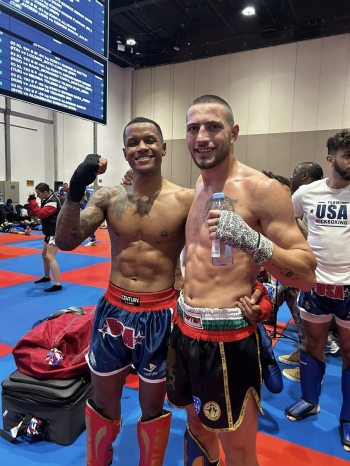 АБУ ДАБИ. Кикбоксьорите на "Спартак Пазарджик" впечатляват на световното първенство в столицата на ОАЕ. Атанас Димов-Алфата продължава на полуфиналите след като се наложи категорично над съперник от Португалия. В третия рунд съперникът на пазарджиклията успя да вземе една точка, но това не промени крайния резултат и Димов победи с 2-1 в стил лоукик 71 кг при мъжете. Другият представител на "Спартак Пазарджик" и България - Александър Рибников, загуби своя мач в много тежък и оспорван двубой с фаворита в категорията Андрей Кедвес от Хърватия, който е шампион от веригата "Сенши" и световен шампион. Сашо започна с явно превъзходство в първия рунд и водеше по точки, в средата на втория рунд нещата започнаха да се обръщат, резултаатът се изравни и постепенно противникът навакса и поведе в точките. В последната фаза на третия рунд Рибников пресира изключително силно и мощно противника си но не можа да обърне резултата.