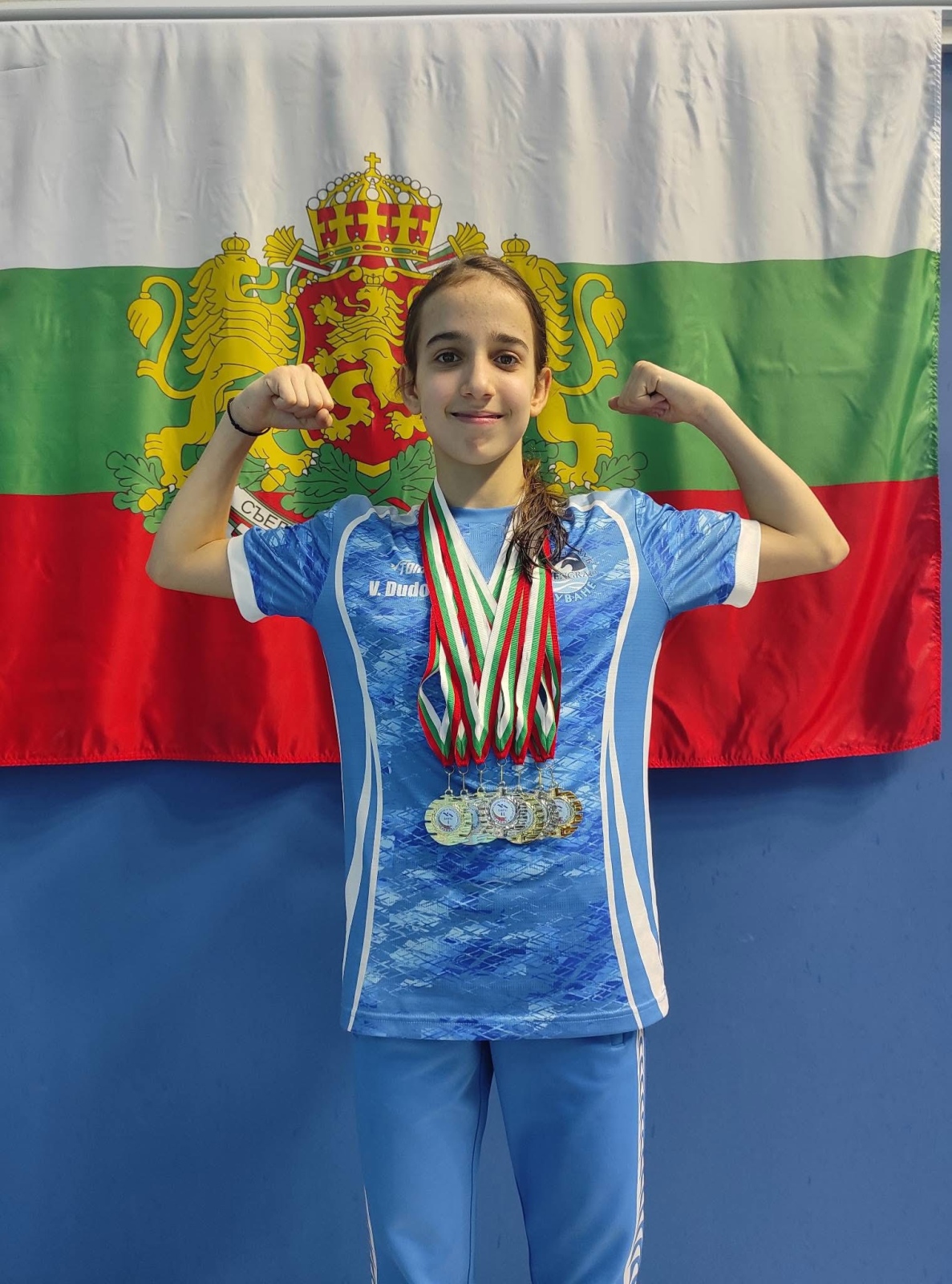 Виктория Дудова – 5 държавни титли, което я направи абсолютната лидерка в класацията по брой медали при момичетата. Със златни медали на 100 и 200 м съчетано, и 50 гръб, и сребро на 100 и 200 м гръб.