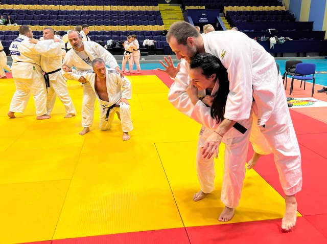 Не по-малко впечатляваща бе практическата част. На татамито Меснер демонстрира разнообразни упражнения и игри, подходящи за ранното обучение, както и основни елементи в изпълнението на учи-коми. Треньорите активно участваха, задаваха въпроси и получаваха подробни разяснения и практически насоки, което превърна обучението в динамичен професионален обмен.