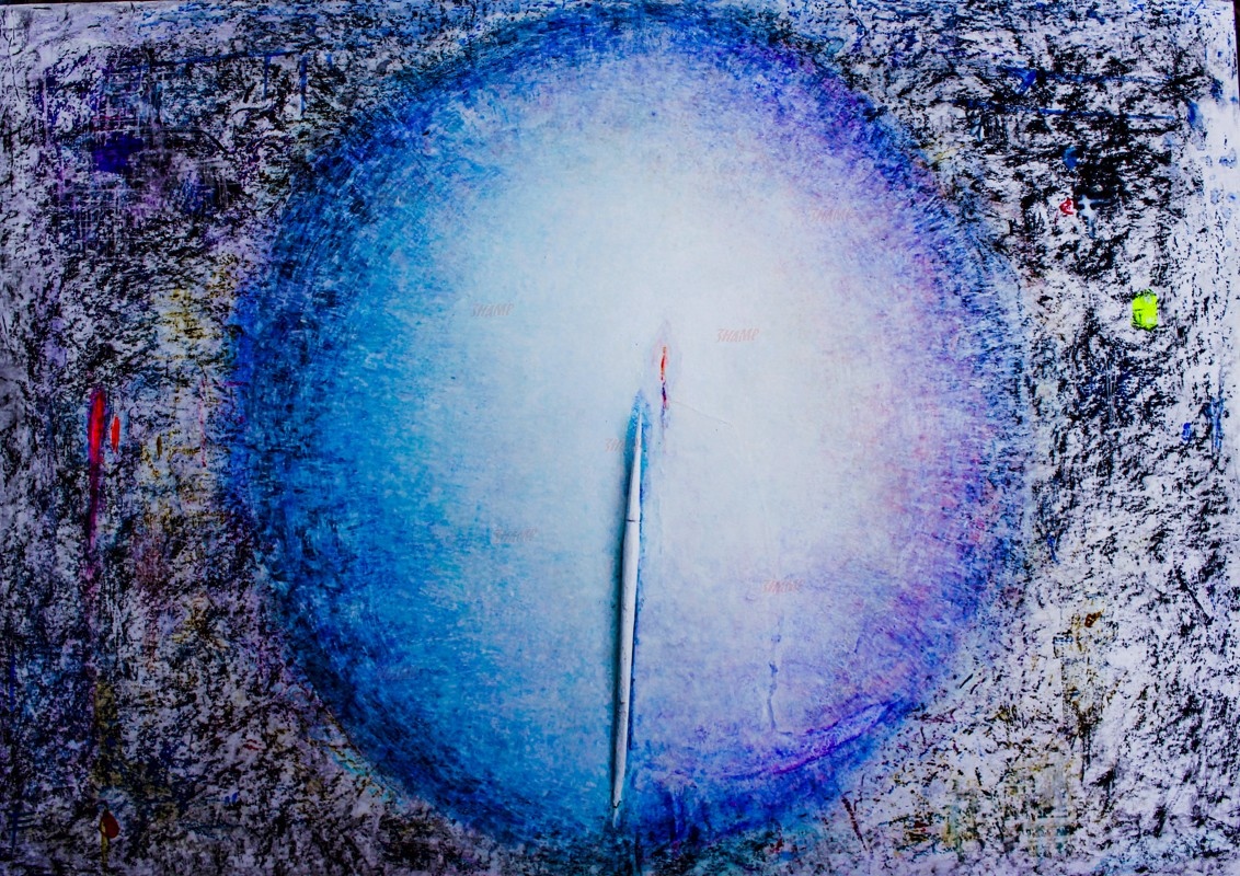 В „Процеси XIV” Петър Бажлеков изразява особено отношение към живописта и акрила, като търси баланс в