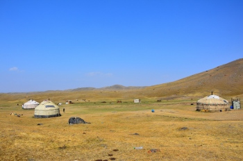 Пейзажът започна да се променя. Стана по-стръмно на места. Малко преди базовия лагер се появиха юрти на номади.