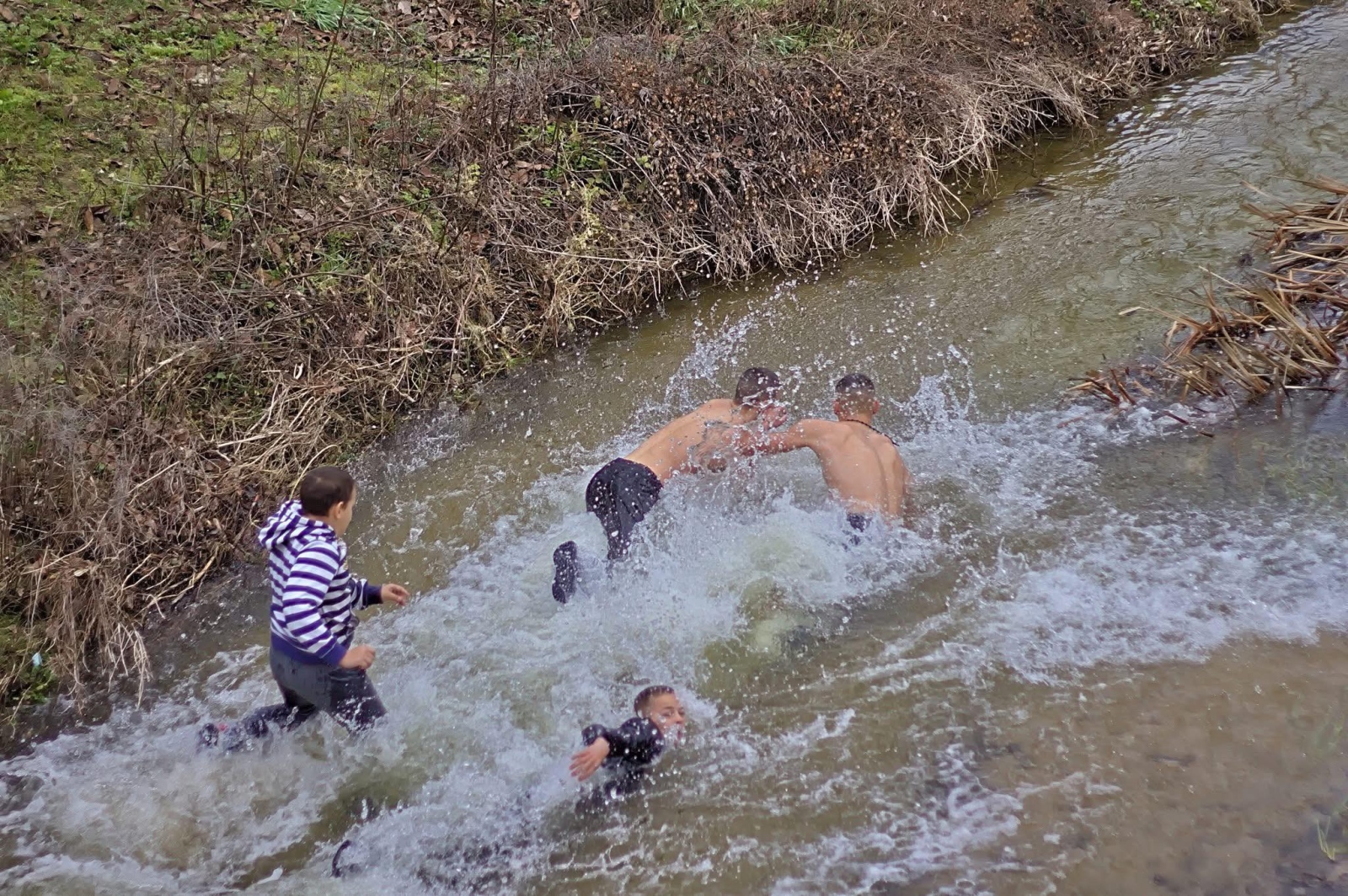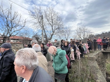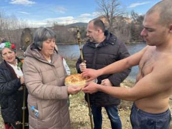 В 11 ч. днес на Богоявление отец Ангел Тонов хвърли кръста в р. Тополница край Калугерово. Стефан Симеонов и Борислав Атанасов се бориха, но късметлията този път беше 23 годишния Стефан.