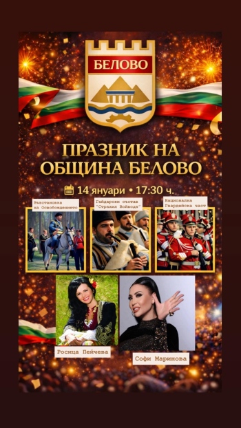 В сряда, на 14 януари, Белово ще празнува. Тържествата ще започнат в 17.30 часа на централния площад „Освобождение“, а сред гостите ще бъде президентът Румен Радев. Ще присъства и Национална гвардейска част.