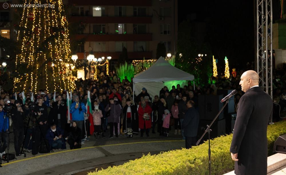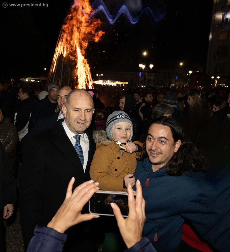 В приветствието си към жителите на Белово президентът Радев открои себеотрицанието на предците им в съдбоносната за българския народ борба за национално освобождение. „България би изглеждала по друг начин, ако те не се бяха влели в Априлското въстание, ако нямаше стотици доброволци от вашия край, които да следват и съпровождат победоносния поход на освободителните руски войски“, посочи държавният глава и благодари на жителите на града, че на днешния ден са изпълнили площада на Белово заедно с децата си. „Не може да има силна и достойна България, ако не завещаем на идните поколения подвига, саможертвата и вярата на нашите предци и тяхната вяра в бъдещето на България. Тя е в кръвта ни“, призова президентът. Той припомни думите на революционера Тодор Каблешков, според когото ако има хора, които „биха дали мило и драго за просвещението си – това са беловци“. Запаленият огън на площада на Белово, така както са били посрещнати освободителите в мразовитите януарски дни на 1878 г., е не просто ритуално отбелязване на миналото, а показва цената на свободата и възвърнатото достойнство на народа ни, посочи още президентът. „Светлината от този огън огрява и стойностите и добродетелите, върху които градим нашето настояще и бъдеще“, допълни Румен Радев и поздрави гражданите и общинското ръководство за единството в името на по-прогресивен и развиващ се Беловски край. „Тази вечер с енергията си давате пример и надежда за бъдещето на България", подчерта още президентът.