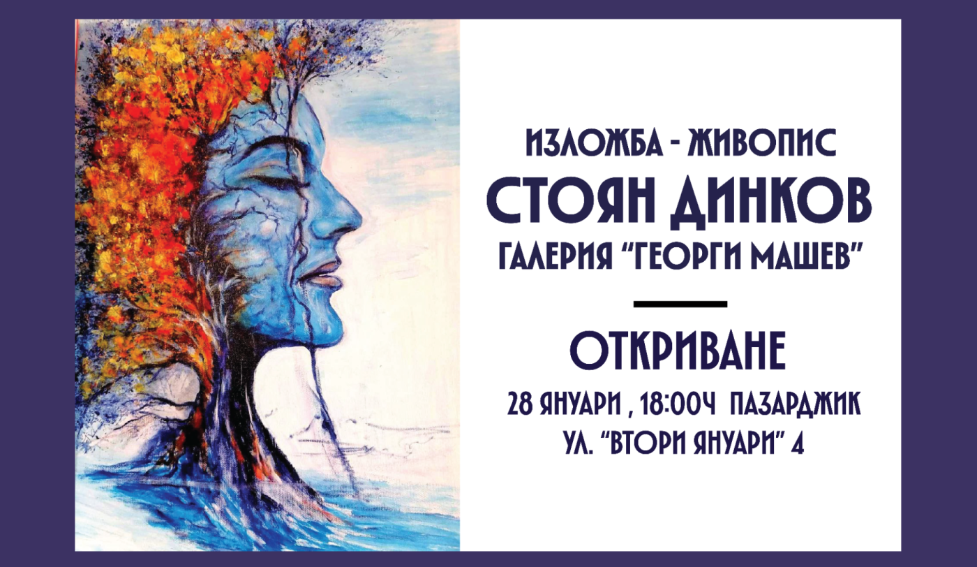 На 28 януари от 18 часа художникът и писател Стоян Динков, син на знаменития писател, поет и белетрист Иван Динков ще представи за първи път в Пазарджик шестата си самостоятелна изложба живопис в галерия "Георги Машев".