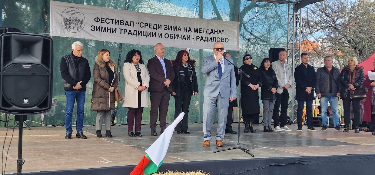 С празнично приветствие се обърна и кметът на Радилово Димитър Данчев, който пожела на присъстващите здраве, благополучие, успех и единство. На сцената, за да уважат събитието, се качиха народният представител от 51-вото Народно събрание Петя Цанкова, председателят на Общинския съвет Васил Филев, заместник- кметът Гълъбина Карамитрева, секретарят на Община Пещера Галина Стоянова, общински съветници и представители на общинската администрация. По стара традиция кметът Данчев запали фестивалния огън и нарече за мир, разбирателство и берекет през годината, като пожела на своите съграждани "незабравими мигове и нова среща на мегдана и догодина."