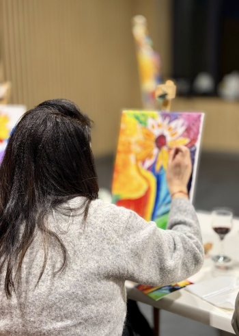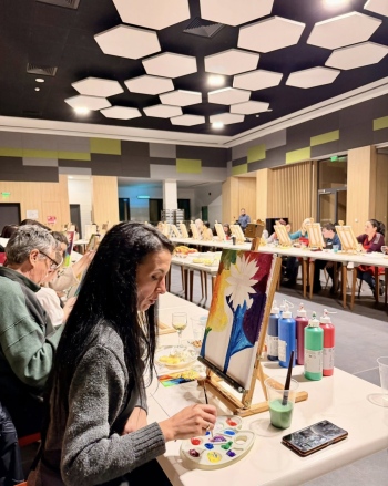 Столовата на "Биовет" АД се превърна в гигантско ателие за рисуване във вторник вечерта, когато тридесет служители на фирмата взеха участие в инициативата "Рисуване и вино". Събитието бе организирано по идея на Станимира Батаклиева, като се превърна в благотворителна кауза.