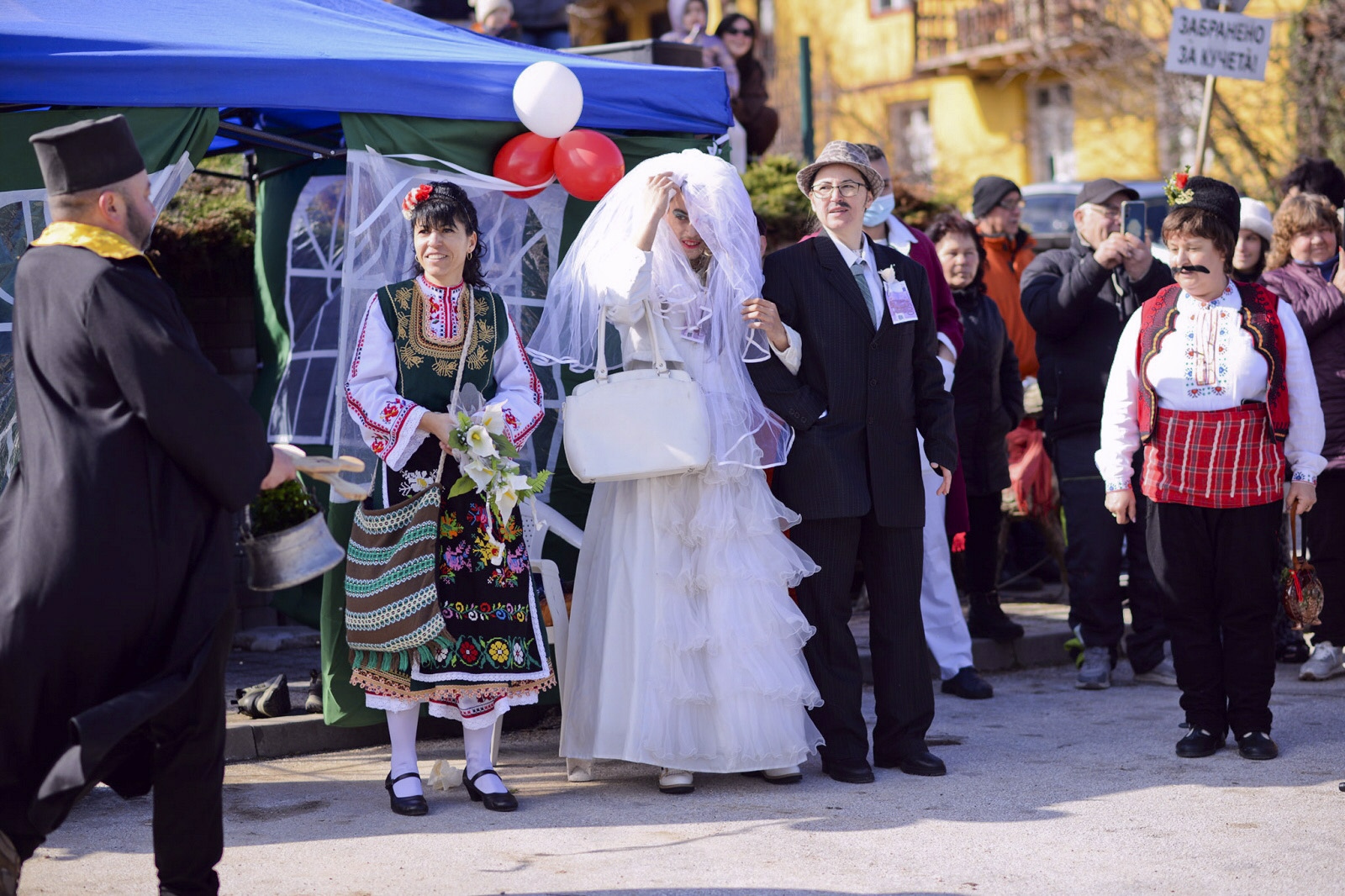 Неочаквано свекървата от същата маскарадна сватба припадна
