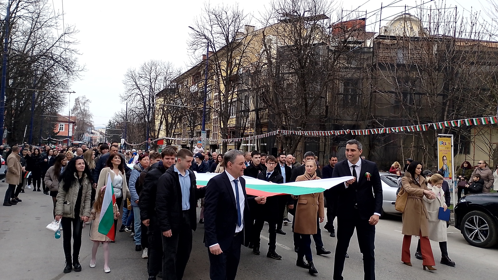 Стотици пазарджиклии излязоха като участници и зрители за Третомартенското шествие със 100-метровото знаме послучай днешния национален празник, с който отбелязваме освобождението от османско иго. Представители на местната власт и на институциите, депутати, граждани, водени от членове на НД "Традиция", кмета на общината Петър Куленски, областният управител Любомир Щечев и председателя на Общинския съвет Десислава Георгиева преминаха по централния булевард "България", като началният пункт бе НЧ "Виделина - 1868 г.". Шествието премина покрай сградата на Общината и продължи до Тортата, където тържествено бе вдигнато знамето на Република България под звуците на националния ни химн.