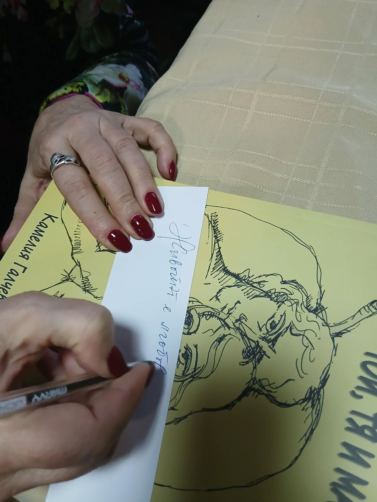Коко Анастасов е автор на корицата и на графиките в книгата, а Тони Демирджиев прочете избрани откъси от нея, включително стихотворения на покойния съпруг на доц. Галчева - дългогодишниятя преподавател Георги Галчев, който си отиде преди почти 3 години.