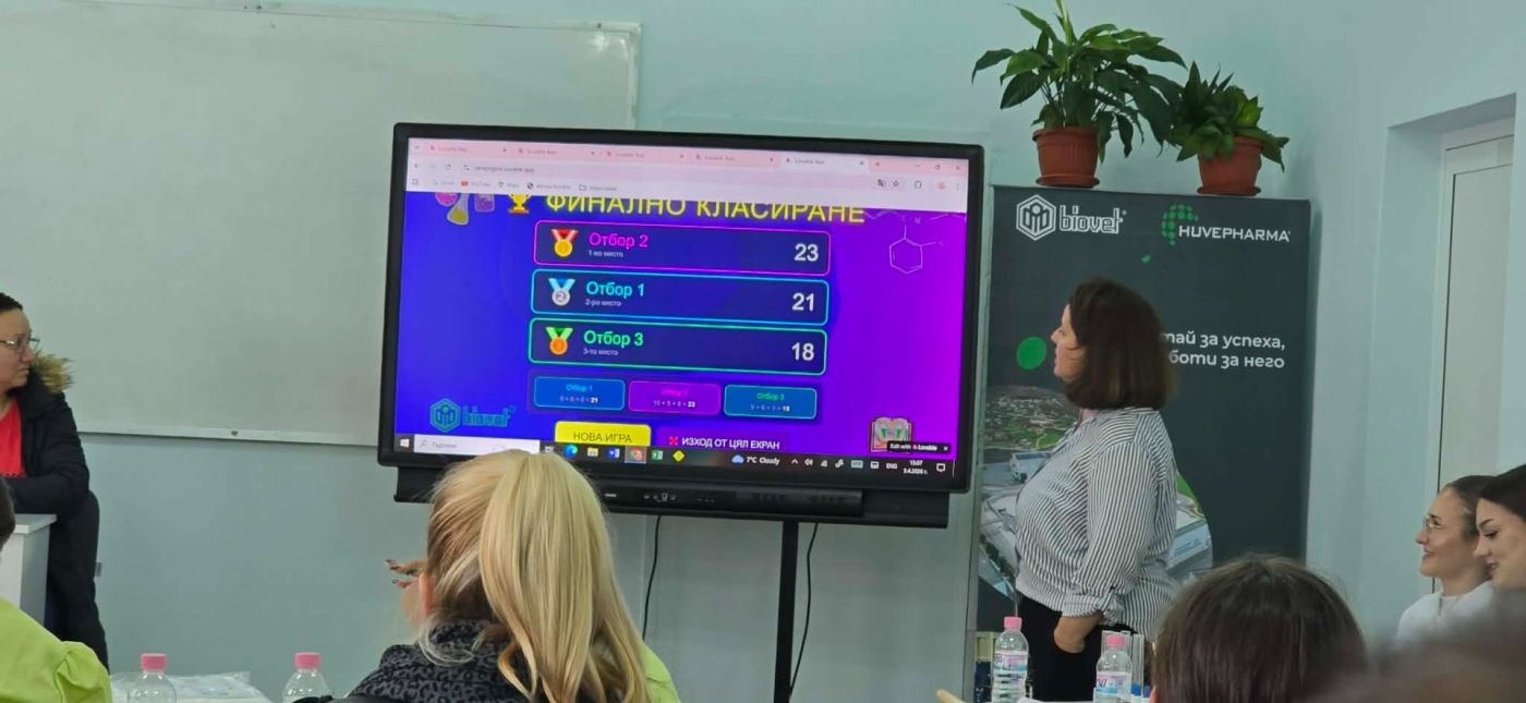 На трето място останаха ПГХХТ - гр. Пазарджик с отбор - Камелия Делова – 10.а клас, Рени Янкова – 10.а клас, Запринка Запринова – 8.г клас и Надя Маврева – ръководител на отбора.