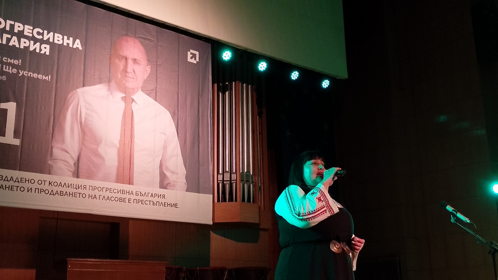 „Искам да ви благодаря за тази препълнена зала – аз не гледам социологията, но съм сред хората и виждам техните страхове, послания и техните надежди. Ние сме единствената политическа сила, която прави кампания в зали и на площади… И тази „социология“, която ни показвате тази вечер, и тази енергия, ясно ни казват, че ние ще спечелим тези избори. Въпросът е с колко. Защото сглобката не е разглобена – от една страна е ГЕРБ и Пеевски, от другата страна е „Продължаваме промяната“. Те продължават да са заедно. Вижте как ПП, чието е служебното правителство, не махат шефа на ДАНС, за да не падне охраната на Пеевски. Аз ви гарантирам, че ще дадем всичко от себе си да превърнем в реалност нашата програма. Включително да накажем онези, които през главата ви въведоха еврото. Които обещаваха, че цените няма да растат нагоре и ще се изсипе златен дъжд от инвестиции, всъщност оставиха всички нас на произвола на галопиращите цени. Без никакви финансови буфери, без никакви финансови мерки, без никакъв контрол. И най-важното – без мисъл какво ще се случи с хората. Те не ви питаха за еврото – сега вие не ги слушайте за изборите“, заяви в кулминацията на речта си Румен Радев.