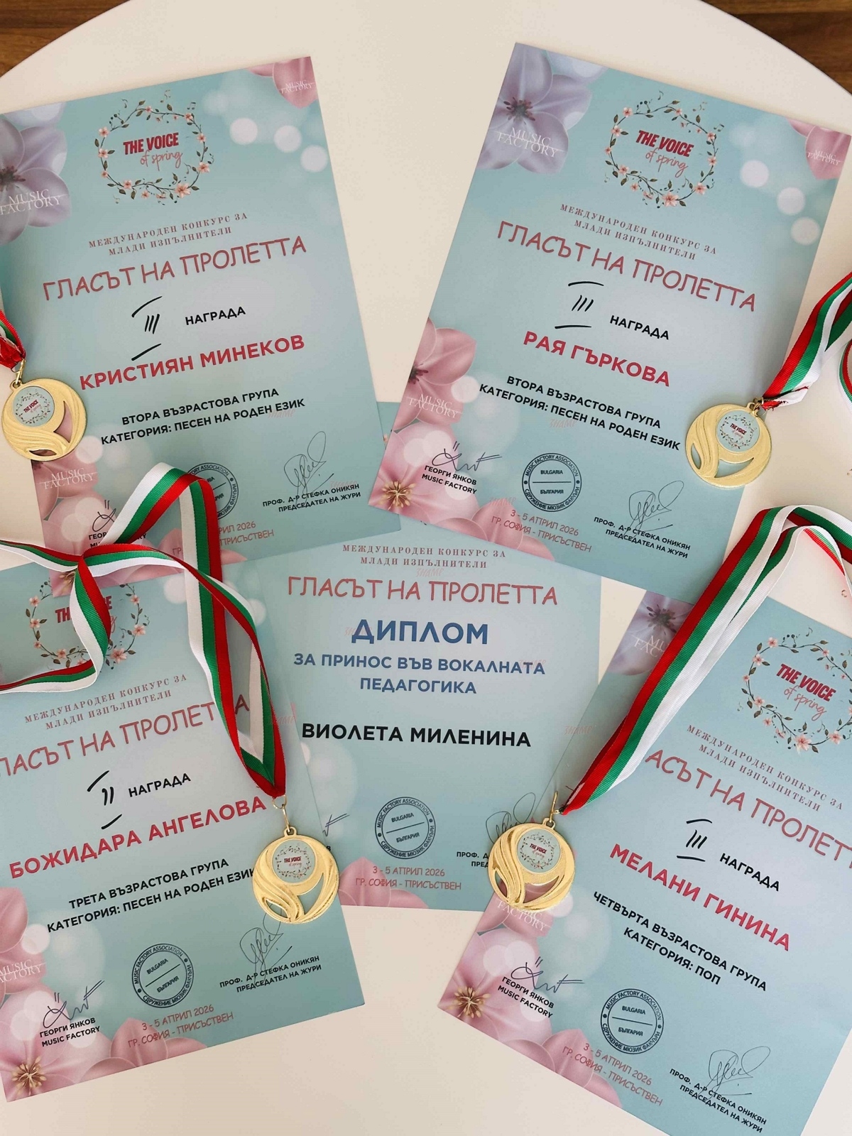 Младите таланти от Vocal Academy към Младежки дом - Пазарджик се завърнаха с високи отличия от участието си в Международния конкурс „Гласът на пролетта“. Събитието се проведе от 3 до 5 април 2026 г. в София, като събра изпълнители от различни възрастови групи.