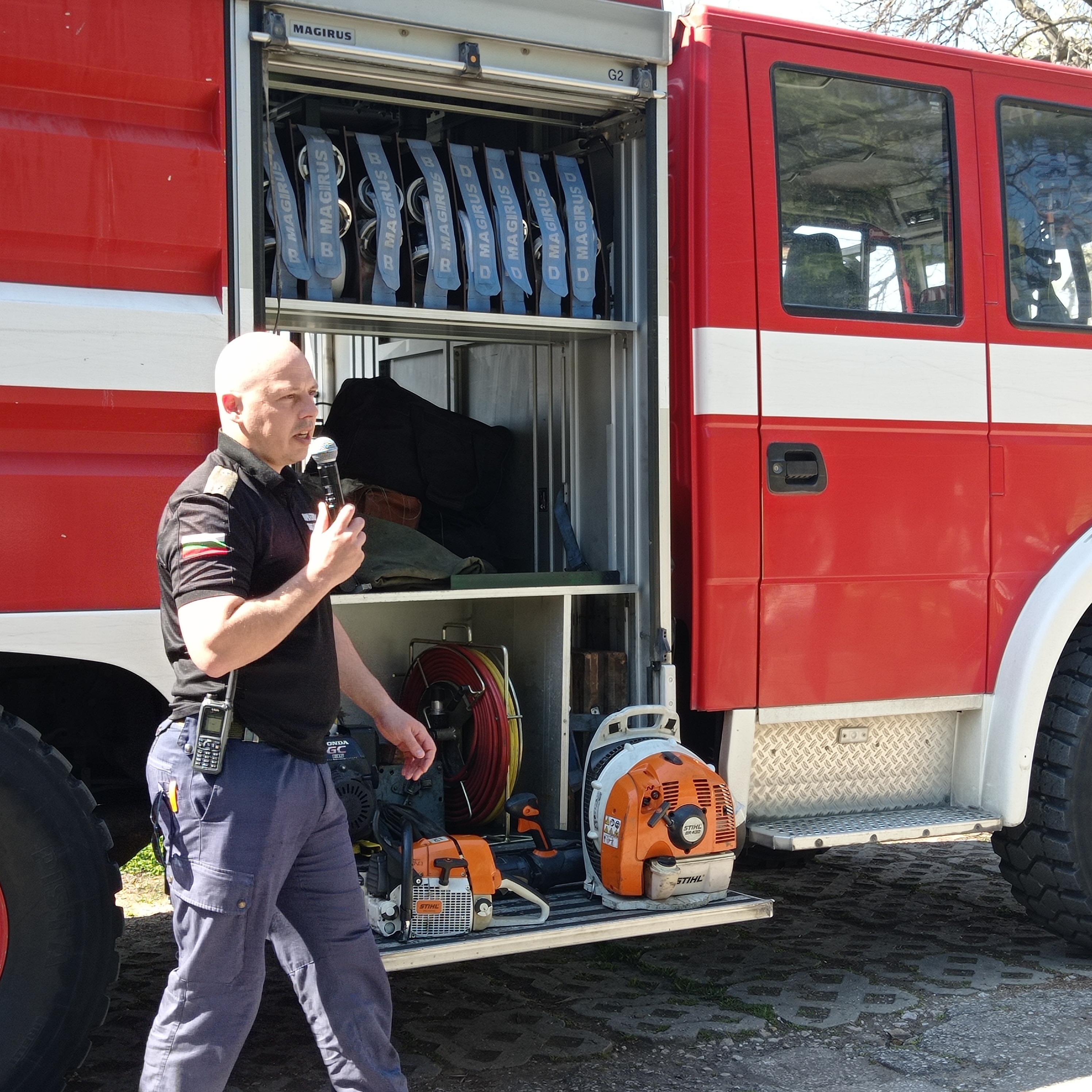 Инспектор Тодоров от РДПБЗН-Пазарджик и колегите му запознаха учениците със специфичното оборудване и техника за гасене на горски пожари, включително и иновации, направени „на терен“ от огнеборците – като поставения акумулаторен пистолет на стандартна пръскачка с вода, който по този начин спестява усилия на пожарникарите…