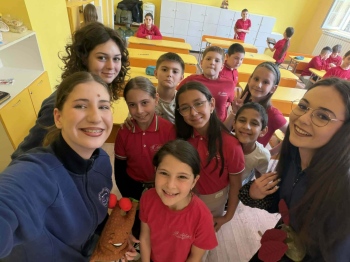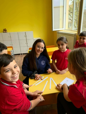Трима от младшите посланици на Европейския парламент – Дария, Ивайла и Елиана от Езикова гимназия „Бертолт Брехт“ – взеха участие в вдъхновяващ урок на зелена тематика, проведен съвместно с ученици от НУ „Васил Левски“ в Пазарджик. Атмосферата на занятието беше разчупена от талисманите на билковата градинка – Флориан и Цитрус, които допринесоха за доброто настроение и активното включване на учениците. Урокът беше организиран чрез работа по групи, което насърчи сътрудничеството и споделеното учене. Инициативата се реализира по покана на г-жа Гълъбинова и г-жа Манчорова, които включиха по-големите ученици като ментори в учебния процес.