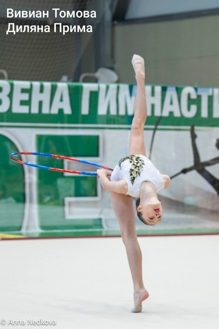 наблюдава селектираните деца с потенциал - чрез съвместни тренировки и едноседмичен лагер, който също завършва с изпити – поясни пред „Знаме“ Величка Петкова-Куленска, председател и старши треньор на ХГ „Диляна Прима“. Тя е и член на комисията, чийто състав се избира на общо събрание. Вивиан и Никол (те са родени 2015 и 2014 г.) тренират при нея, а Дарина (2016 г.) - при Ружа Блангева. Хореограф и балетен педагог е доказаният професионалист Диди Кирова. - Това контролно беше оглед – без класиране. Имаше доста деца, изиграха съчетанията си по държавния спортен календар - 4 уреда за девойки младша възраст, където е Никол, и 3 уреда - от които единия е без уред, където са Вивиан и Дарина. В звеното
