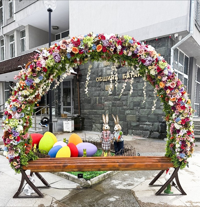 В Пазарджик Тортата отдавна не е единственото украсено място. Във Велинград красивите композиции също са пръснати на различни места, а в Батак арката пред сградата на Община е с променена визия. В Ракитово също се подготвили подобаващо да посрещнат Възкресението, а в Белово гигантска кошница с яйца носи духа на Великден в компанията на Великденския заек и канарчето Туити. Празничността се усеща и в останалите общински центрове.