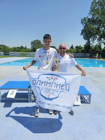 ПАЗАРДЖИК. На завършилото днес Държавно първенство по модерен петобой до 15 години (U 15), което се провежда на плувен комплекс „Балона“, СК „Олимпиец“ (Пазарджик) имаше повод да гръмне шампанското. Поводът да радостта на треньорите Димитър Кестенов и Димитър Донов бе спечелена републиканска титла в индивидуалното класиране и сребърна купа в отборното. „Златното момче“ на клуба Симеон Серев бе най-добър в генералното класиране след плуването, фехтовката, комбайна бягане и стрелба) и обстикълса и стъпи на върха на почетната стълбичка в индивидуалното класиране.