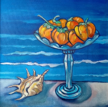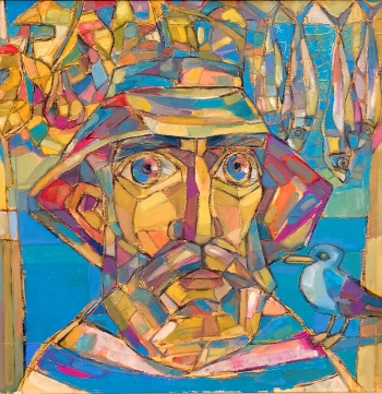 „За мен това е един от най-хубавите цветове, извън всички оцветени политически пристрастия (никога зад мен нее имало група хора с определен цвят). Категорично не си мисля за Пикасо и неговия син период, но реших това издание на изложбата ми да е в сини цветя, сини риби, сини рибари, сини къщи… Пък и аман тази година от „червени“ събития - пожари, засушавания, фалш и лицемерие в политиката… Реших да се потопя във водата. Водата е студена, синя, а това охлаждане исках малко да успокои и хората от тези нажежени страсти. Д