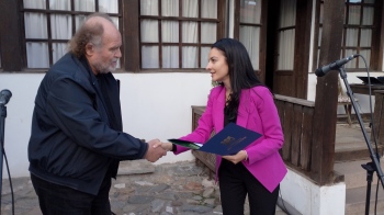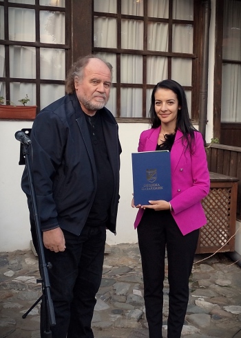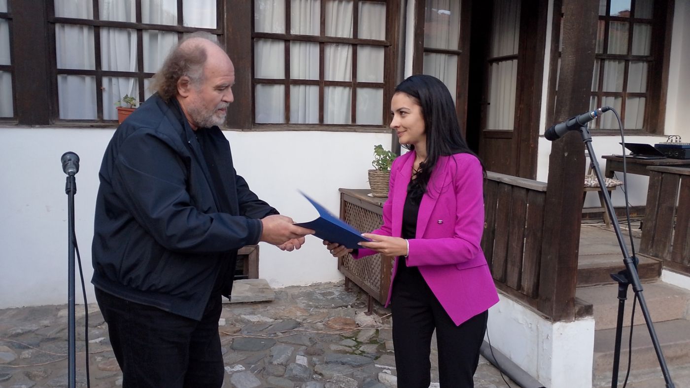 ПАЗАРДЖИК. Скулпторът проф. Стефан Лютаков е носителят на Националната награда „Константин Величков“ на Община Пазарджик, която е посветена на изтъкнатия възрожденски деец и един от най-ярките строители на следосвобожденска България - Константин Величков. На официална церемония в къщата-музей „Константин Величков“ зам.-кметът на общината Таня Колчакова-Янева връчи наградата на проф. Лютаков, която е съпроводена и със статуетка, дело именно на наградения скулптор.