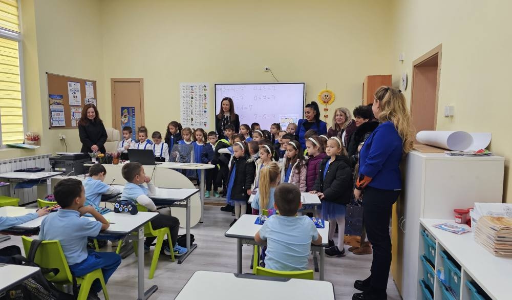 Малките им домакини от НУ „Никола Фурнаджиев“ ги посрещнаха по пътечка от есенни листа с послания и други изненади