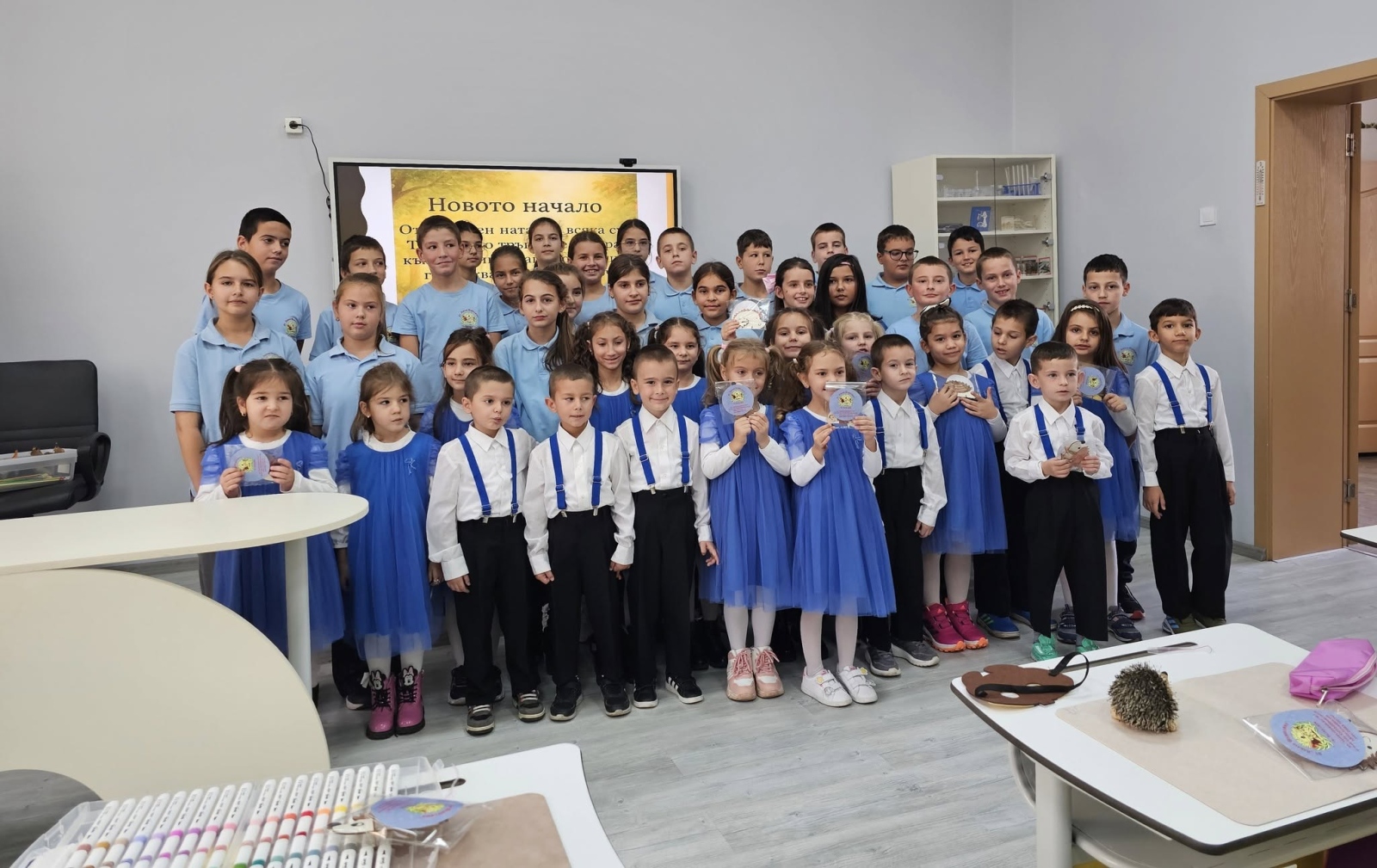 После всички заедно се потопиха в една топла приказка – историята за Таралежко, който с нетърпение отишъл на училище. Децата слушаха със затаен дъх, а след това, вдъхновени от геройчето и с помощта на големите ученици, оцветиха дървени таралежчета в цветовете на есента. Всяко таралежче стана различно, точно като своите малки автори – пъстро, усмихнато и красиво.
