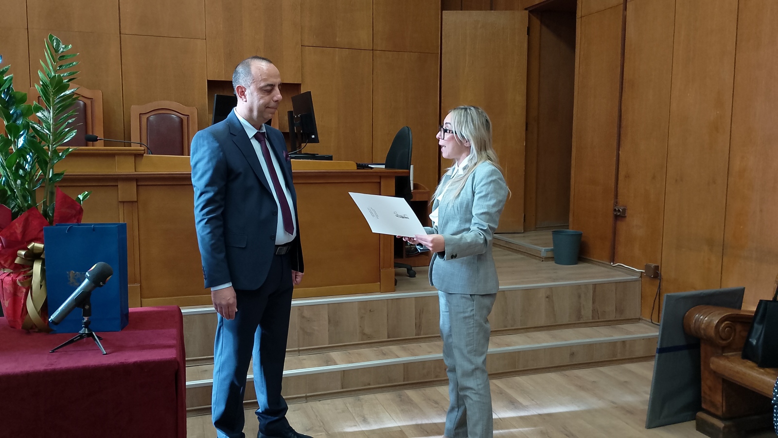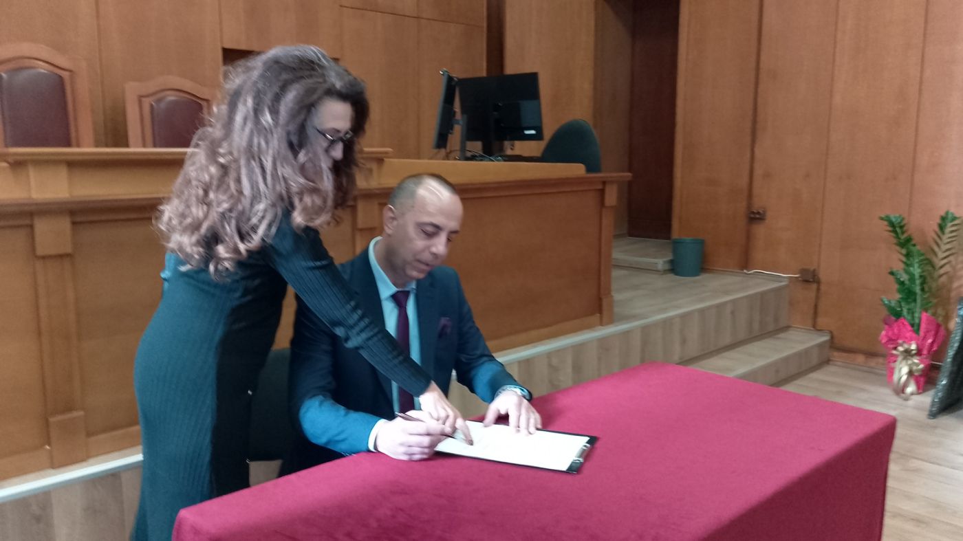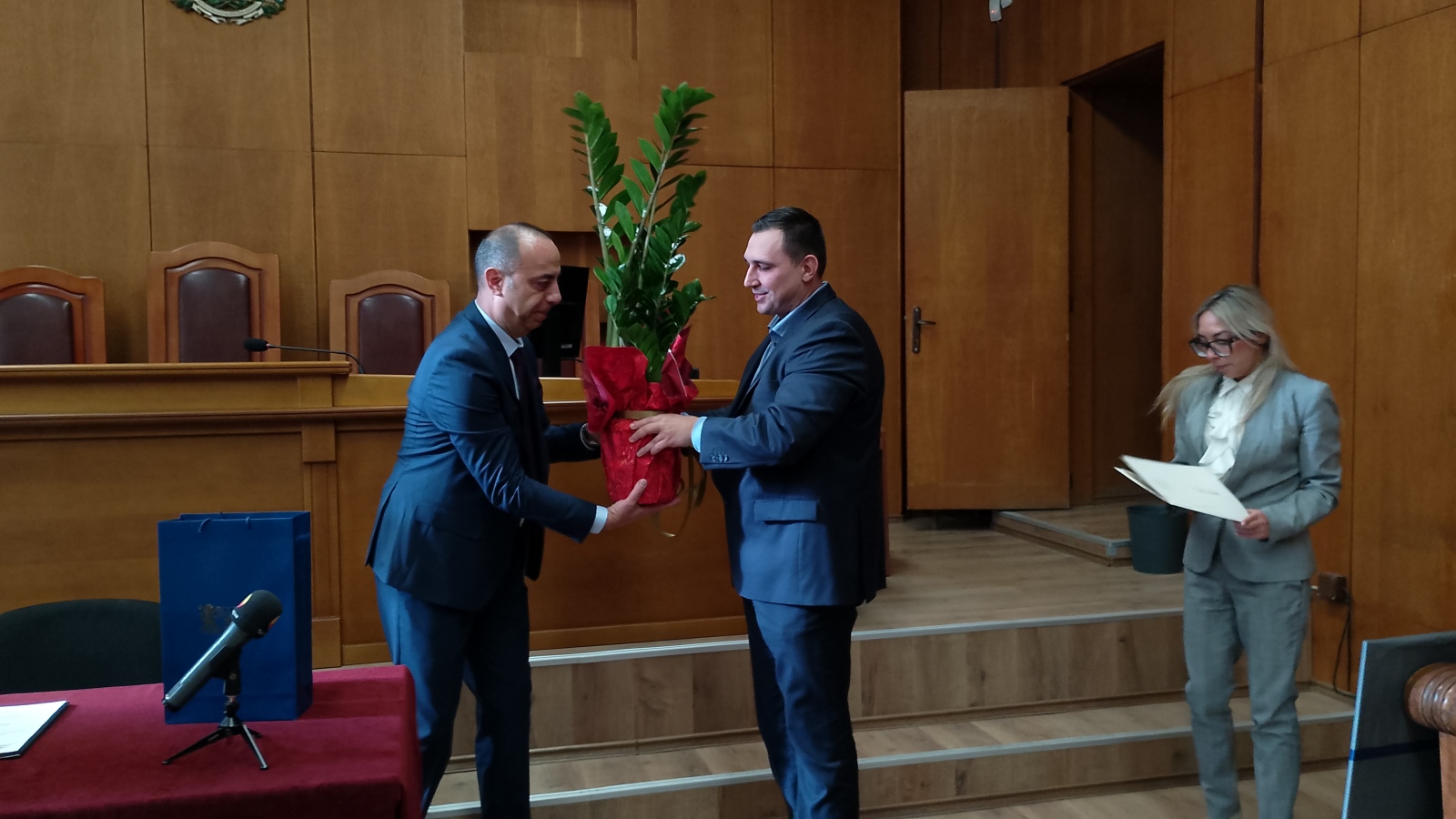 "За мен е чест и привилегия, и въпрос на професионално израстване, след дна дълга и продължителна прооцедура да встъпя в длъжността "Административен ръководител" на Окръжен съд-Пазарджик. Няма да пестя сили и ще работя за издигането на съда на още по-високо професионално ниво", каза новият административен ръководител пред пълната зала номер 1 в Съдебната палата.