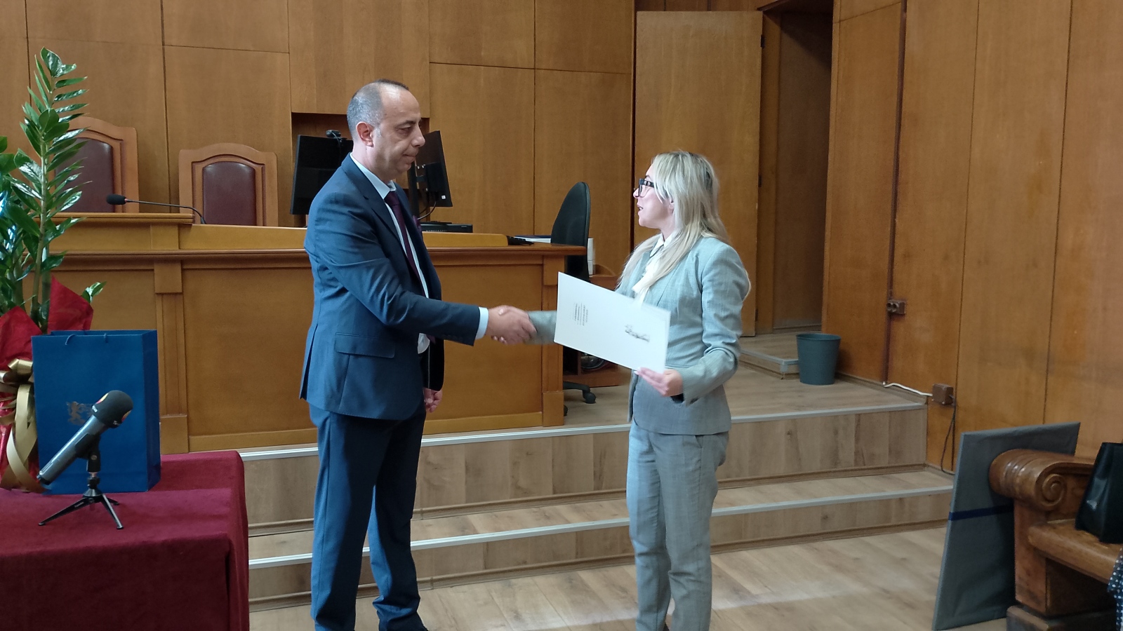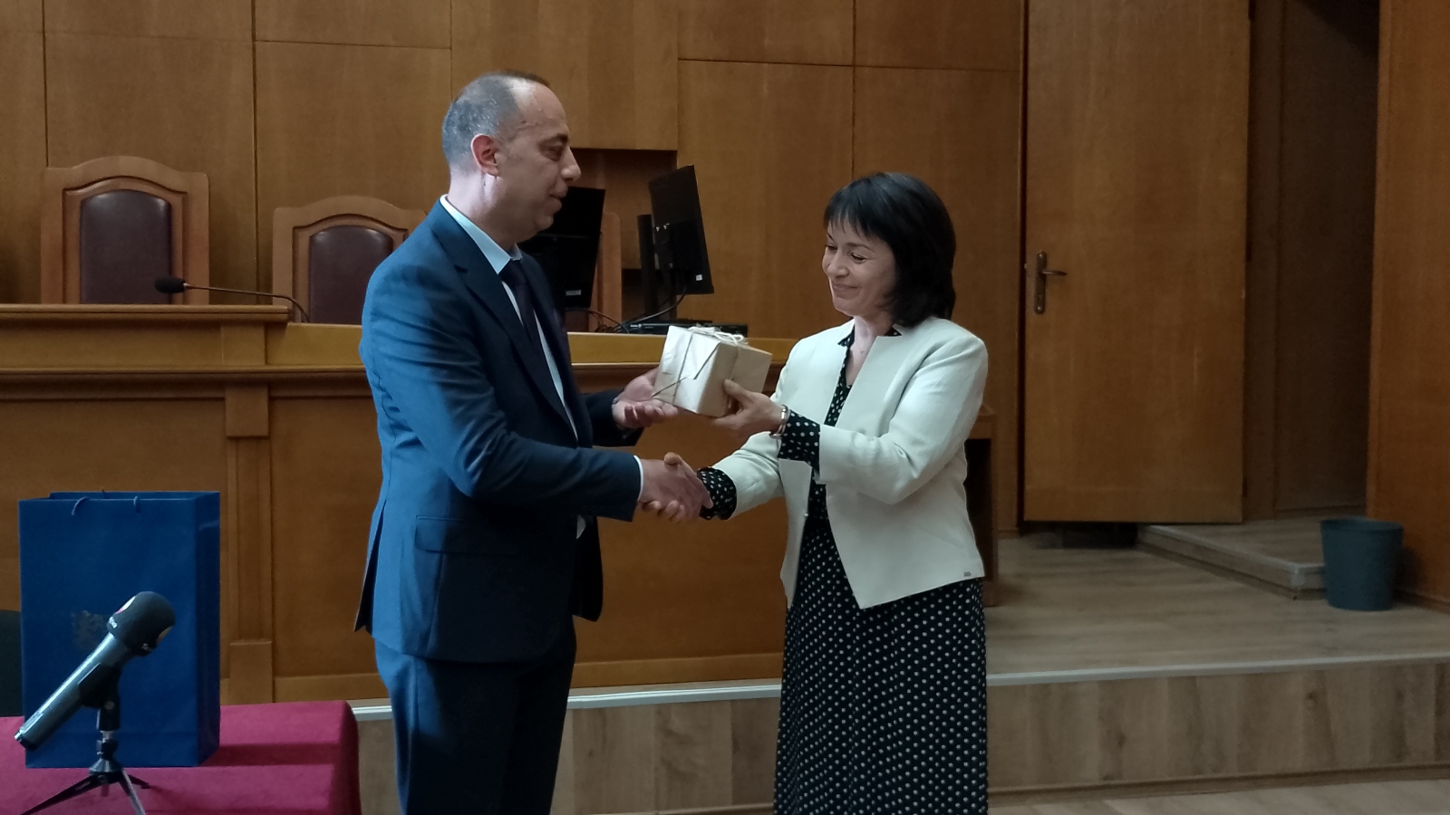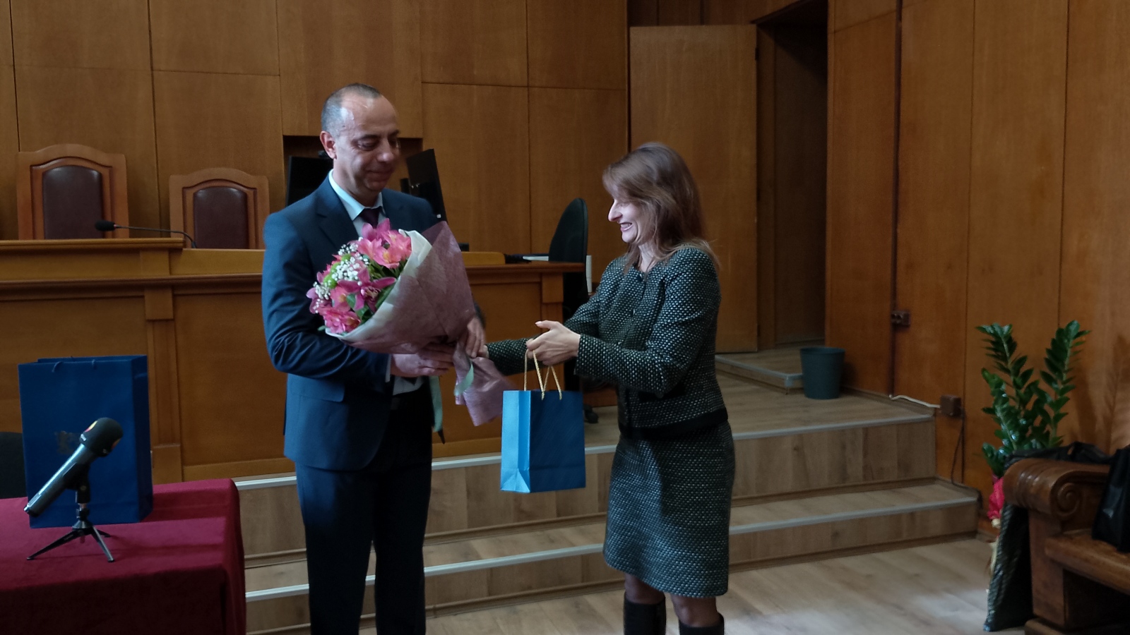 Пожелания за успех в работата и подаръци поднесоха председателите на Апелативен съд - Пловдив и Административен съд - Пазарджик съдия Тянкова и съдия Златева-Кожухарова, председателите на районните съдилища в Пазарджик, Пещера и Велинград Христо Георгиев, Атанаска Павлова-Стоименова и Лилия Терзиева-Владимирова.