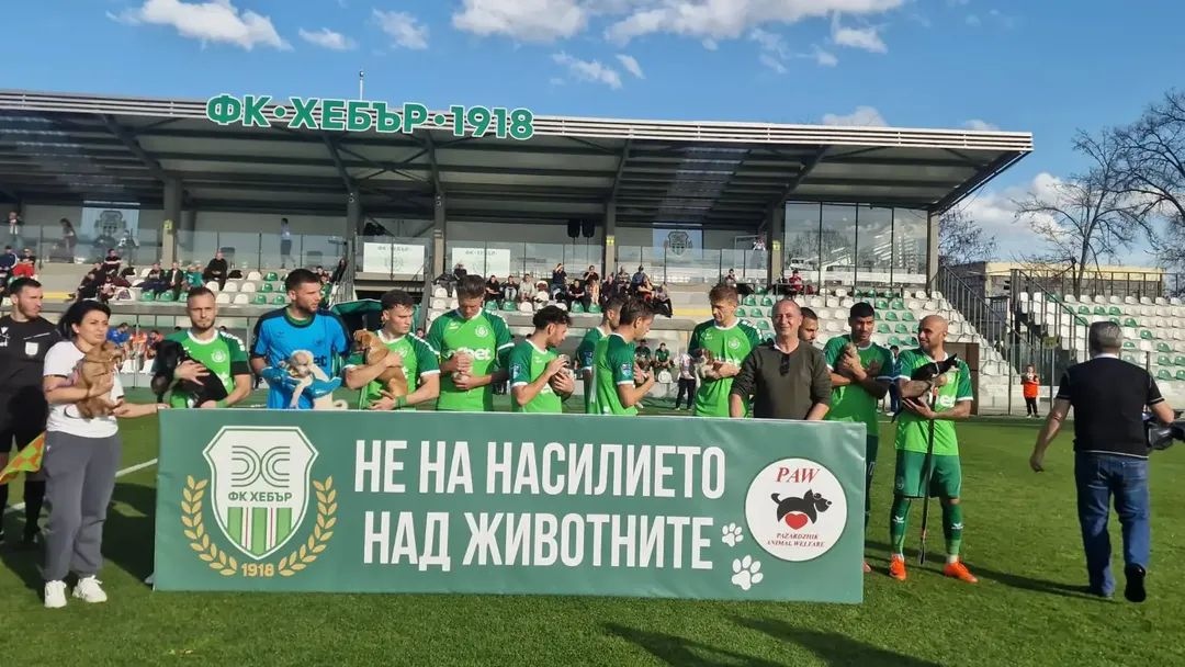 Както "Знаме" писа, от Хебър подкрепиха инициатива в подкрепа на животните. Днес футболистите на отбора излязоха на терена, прегърнали 11 бездомни кученца, спасени от доброволческата организация PAW - Пазарджик. Межсдувременно от клуба публикуваха и съобщение: