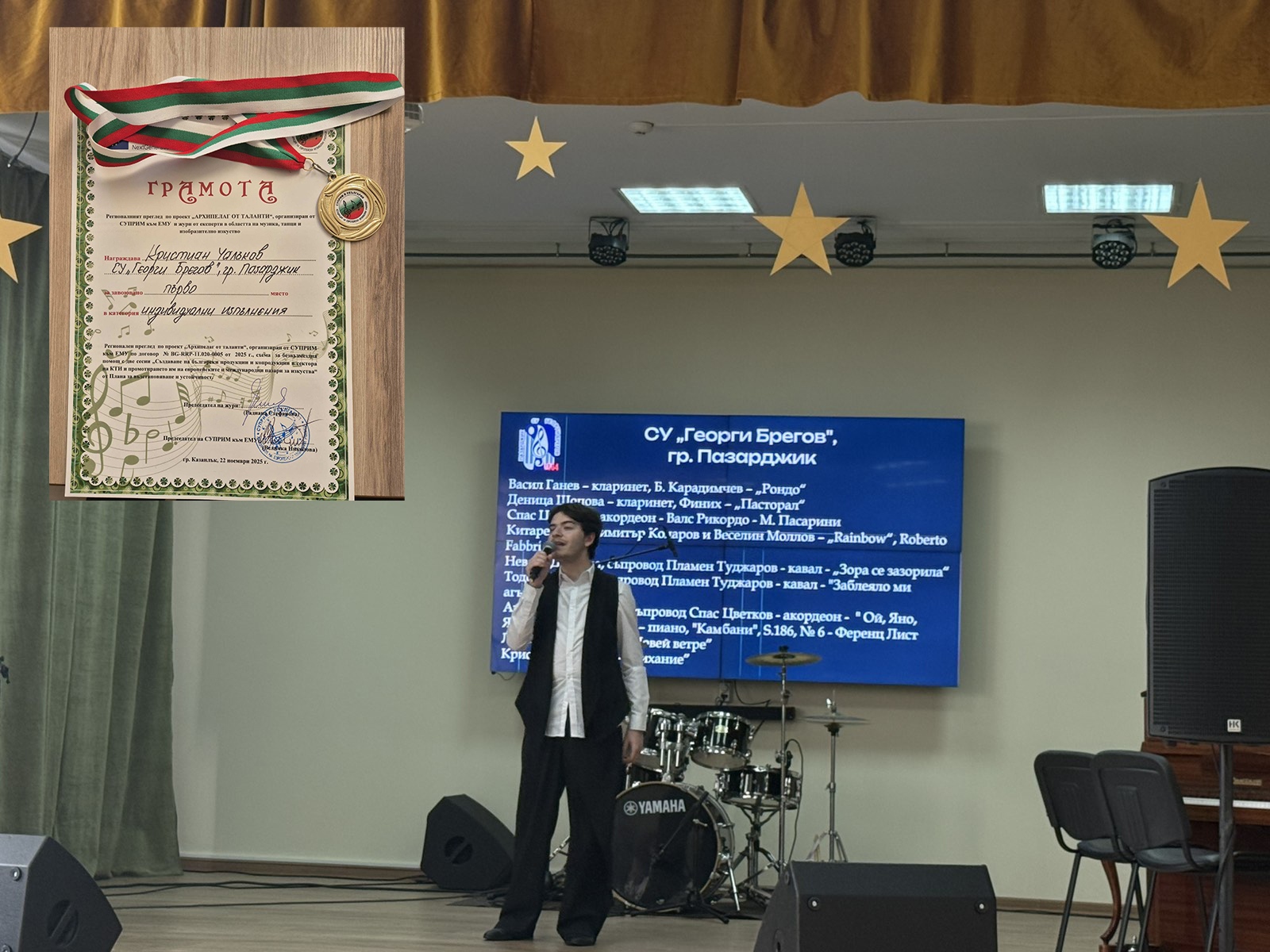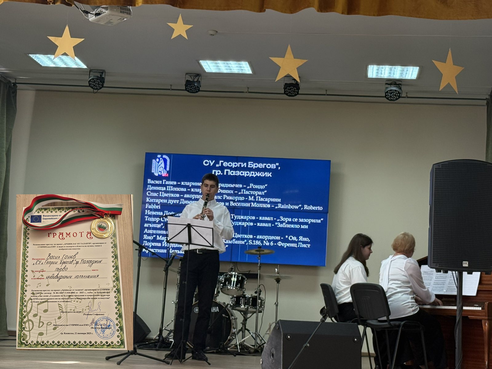 На 22.11.2025 г. в гр. Казанлък ученици на СУ „Георги Брегов“ – Пазарджик взеха участие в Регионален преглед по проект „Архипелаг от таланти“ организиран от СУПРИМ към ЕМУ. Журираха експерти в областта на музиката, танците и изобразителното изкуство. Нашите представители се завърнаха с отличия в няколко категории: