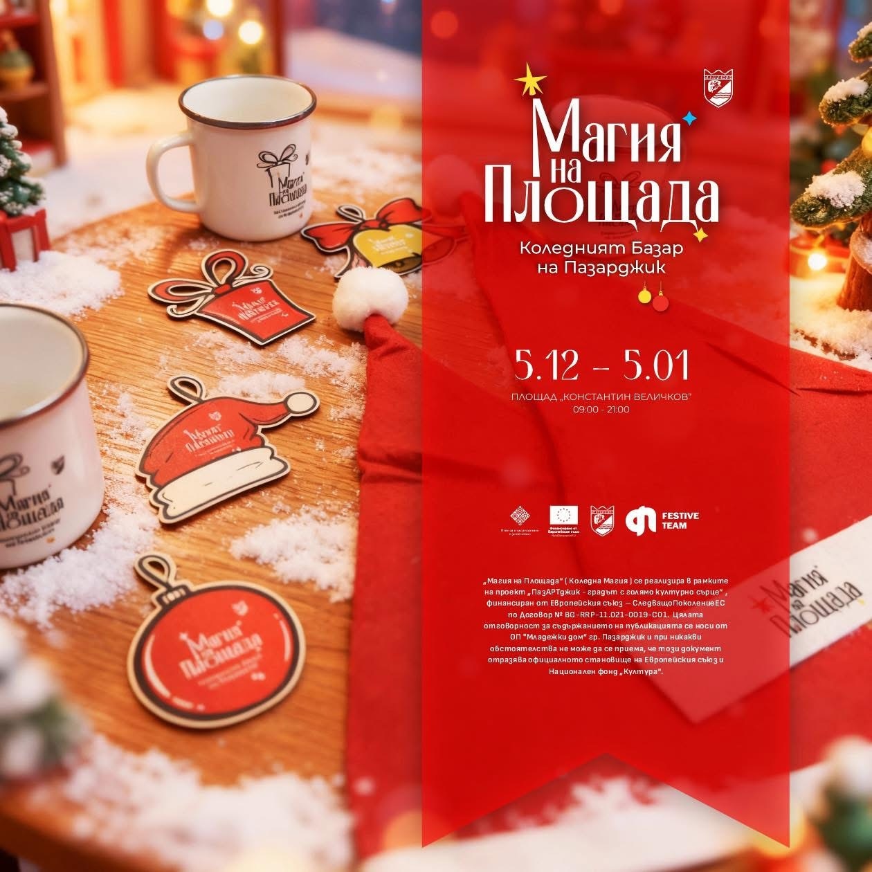 Базарът ще работи от 5 декември 2025 г. до 5 януари 2026 г., като всеки ден центърът на Пазарджик ще бъде изпълнен с празнични аромати, светлини и настроение.