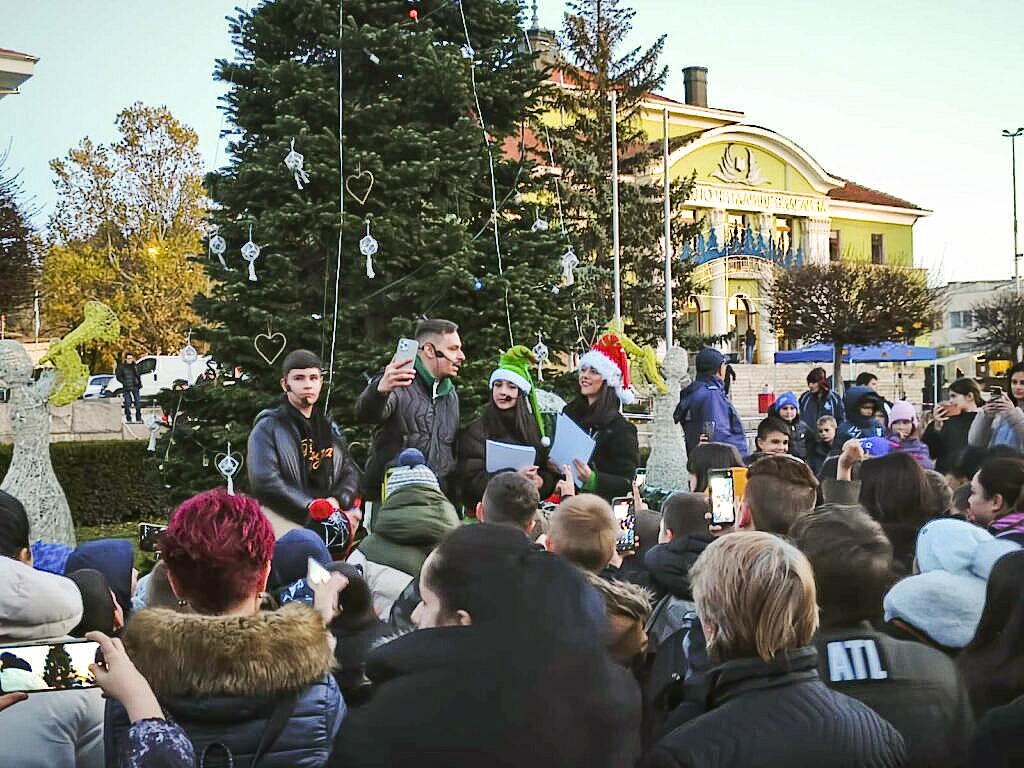 В Панагюрище инфлуенсърите Криската и Алфа Алекс бяха коледни посланици на Дядо Коледа.