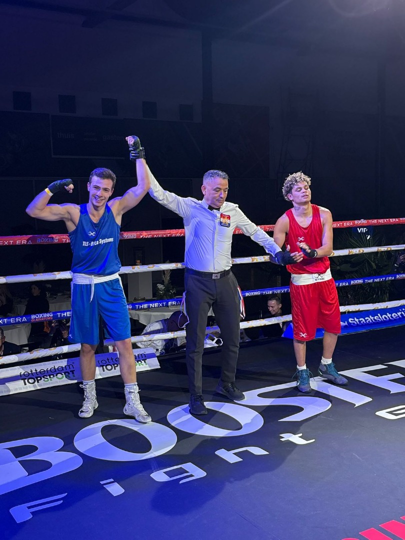 - Благодаря! В Нидерландия републиканското първенство се прави в събота и неделя, за да могат да работят или да учат през останалите дни – за разлика от България, затова продължава по-дълго. Първият кръг беше в Бреда. Бяха четири кръга като започнахме от осминафинал. На мен се падна да почивам, понеже бяхме 14 души в категорията ми. Влязох директно на четвъртфинал, срещу едно чернокожо момче. То беше добро и ми беше малко трудно да вляза в мача, понеже не бях играл от 7 месеца. Но тактически успях да се адаптирам бързо и да победя. Седмица по-късно бяха полуфинала и финала в Ротердам. Организацията бе много по-голяма – имаше и коментатори, въобще беше си голяма гала вечер, не като в България. На полуфинал играх с корав съперник, не му запомних името. Загубих първия рунд и трябваше да наваксам във втория и третия. Успях да се съвзема бързо и във втория рунд даже направих нокдаун. Финалът беше на следващия ден, в неделя, 30 ноември. Пак ми се падна чернокожо момче – той е шампион на Южна Нидерландия (по принцип регионалните първенства на южния и северния регион се играят през пролетта) и бе доста добър – Джейвън Флиер се казва. Нямах обаче особени затруднения срещу него – победих с пълно съдийско единодушие.