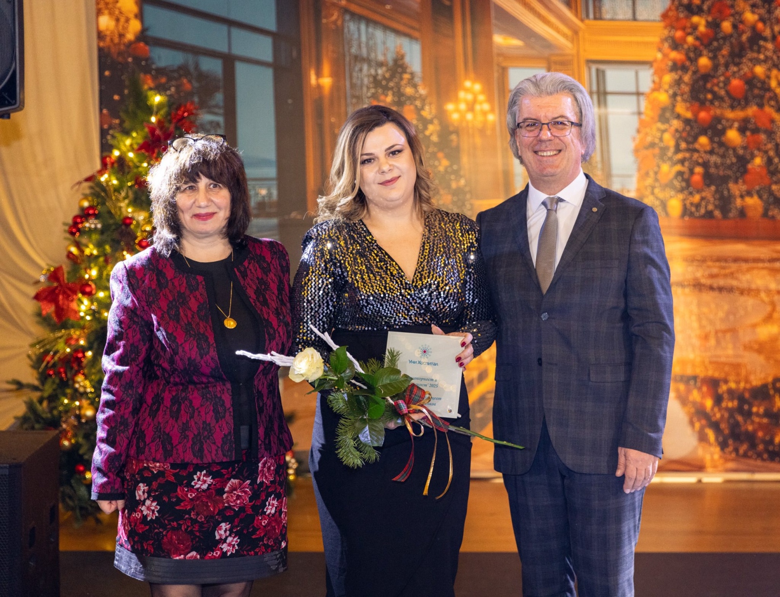 Коледната церемония на МБАЛ „Уни Хоспитал“ още веднъж показа, че зад добрата медицина стоят не само технологии и структури, а хора и екипи, които работят със смисъл, отговорност и грижа.