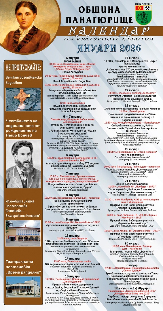 Ето какъв Културен календар е подготвила Община Панагюрище.