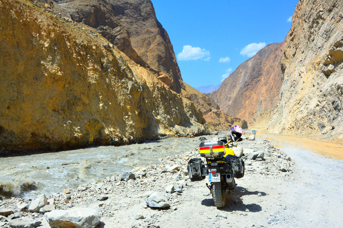 И така за пореден път теглих едни яки псувни на белоруските чукундури за забавянето от над 15 дни и поредната промяна на плана. Нямаше да минаваме през Бартанг. Щяхме да караме към Калайкхум и Душанбе и да се прибираме през Узбекистан. Път, по който сме минавали през 2023 г. Тука някъде по този "прекрасен" път от Хорог до Калайкхум, Миро успя да строши на парчета стойката на задния си куфар. Завърза го с колани за задницата на мотора и така стигна до Бишкек.