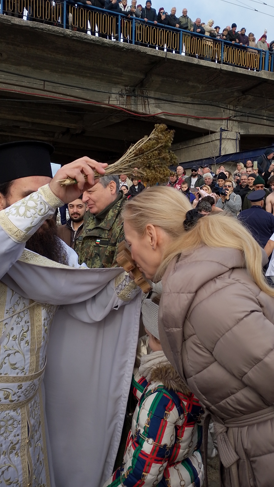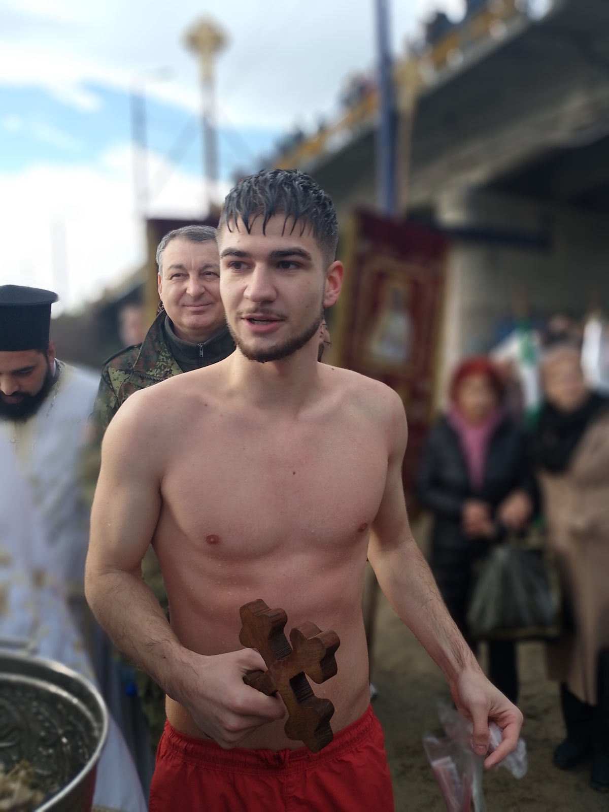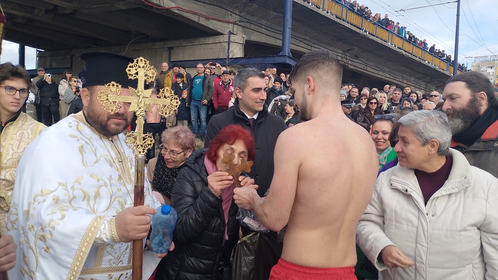 На днешния Йордановден около петдесетина смелчаци скочиха в студената река. Кръстът беше хвърлен от архиерейския наместник - отец Боян Кочев. След като Божия символ бе изваден от водата, младежите изиграха ледено хоро под звуците на песента за Капитан Петко войвода "Петко льо, капитанине". След това мнозина целунаха кръста и дадоха левчета за здраве на Александър, който бе поздравен първо от архиерейския наместник отец Боян Кочев... Кръста целунаха и кметът на общината Петър Куленски, и областният управител Валентина Кайтазова, и бизнесменът Георги Делчев, и много миряни... Александър пък бе спецално поздравен от началника на Военното окръжие позп. Петър Петров и за сполуката, и за решението му да влезе в редиците на Българската армия.