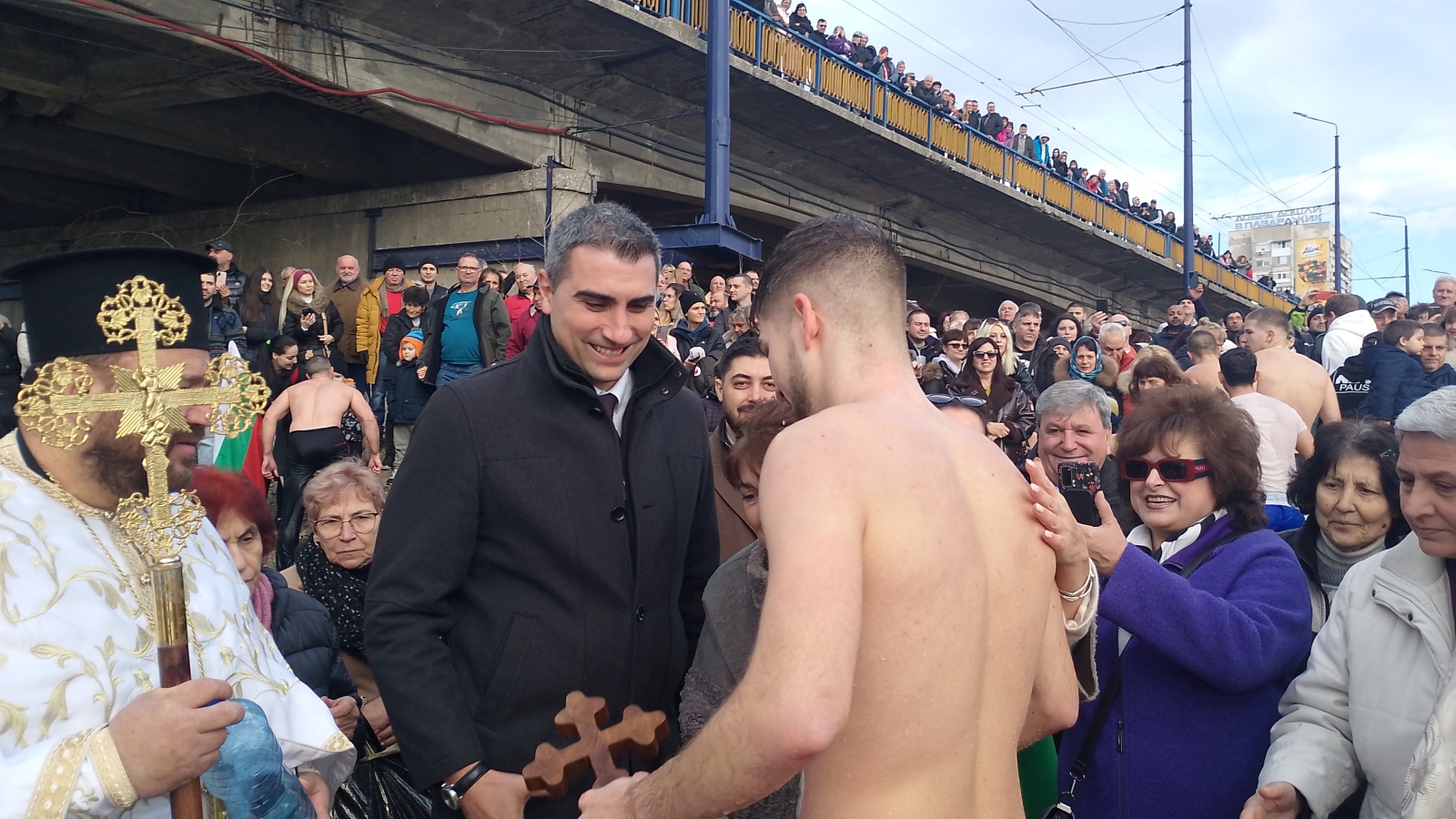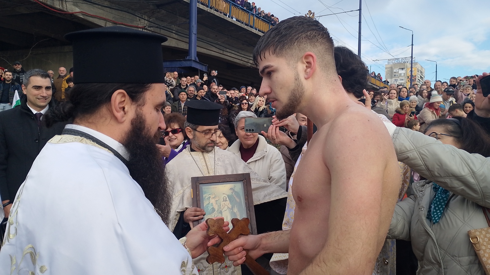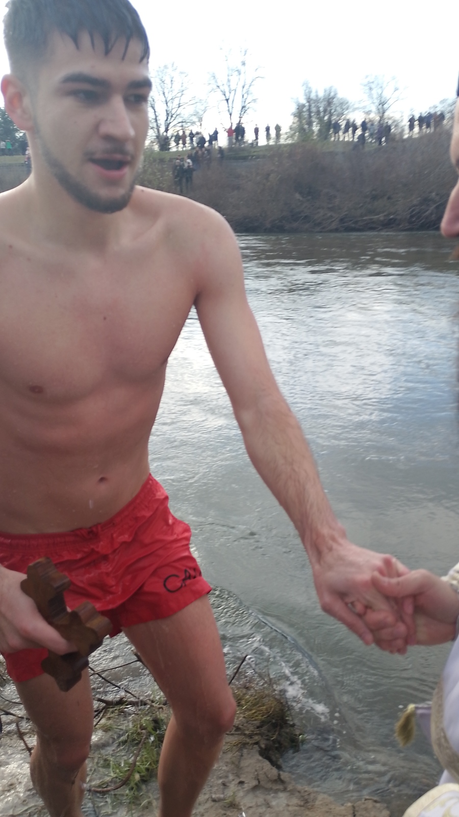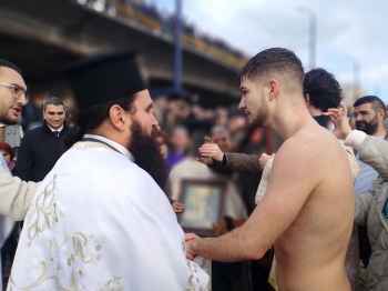 19-годишният Александър Тодоров от Пазарджик извади кръста от Марица преди броени минути в областния град, видя „Знаме“. Александър е от Пазарджик и за трети път скача в ледените води на Богоявление.